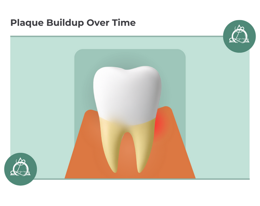 As plaque hardens or becomes calcified, it transforms into tartar (or calculus). Tartar is typically present at the base of the gums or below the gum line and may build into a thick layer, creating recession of gum tissue, and sometimes a pocket of space between the gums and teeth.